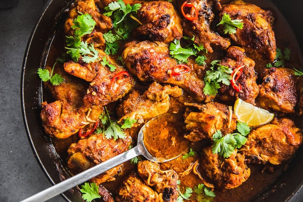 I have taken my dad's famous 50-year chicken curry recipe and created an easy Oven-baked version that is to die for! Clever cooking at its finest. The oven reduces the sauce to a luscious, creamy consistency while roasting the chicken simultaneously to golden perfection.