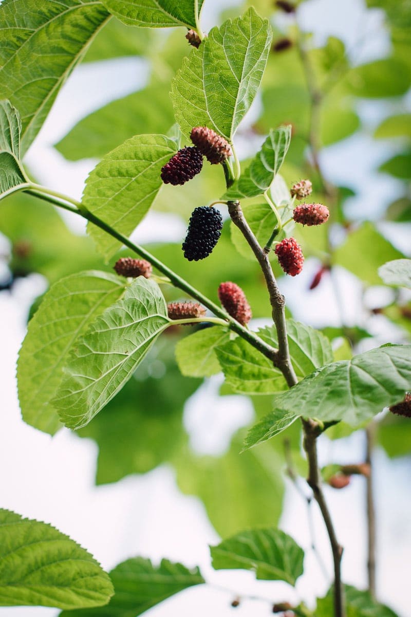 And when I have had enough of just eating them straight off the tree, I love to make a fresh spring-time cocktail with them. Oh, have you ever tried a mulberry cocktail? It is honestly the most delicious thing ever. Rich ruby red, sweet and sour and tangy with beautiful floral notes of the gin.