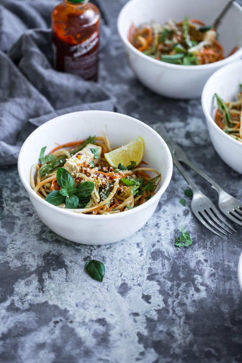 A traditional pad thai is one of my favourite things to eat. But it does take a bit of work. And needs to be enjoyed straight away as it has a tendency to get gluggy and sticky because of the rice noodles. Now imagine if there was a pad thai recipe that had all those nutty, sweet, sour, salty and spicy flavours but was extremely fresh and crisp and required absolutely no cooking. A noodle free pad thai! A healthy meal prep dream! Are you excited?