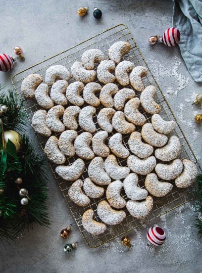 Greek Almond Crescents are sweet little crescent shaped biscuits infused with orange zest and cinnamon that make a delightful tea time indulgence.