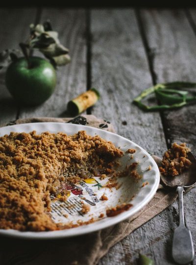An old-fashioned crumble is a timeless classic. In this recipe, the humble apple is heightened to golden buttery goodness. The old-fashioned apple crumble is quick to made and easily adapted into a gluten free version using almond meal.